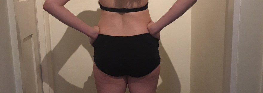Weight-wise, I went from about 127 pounds to about 123, . I’m reasonably small to begin with, so weight loss wasn’t a major aim for me, but hand on heart, I couldn’t help but be a little bit disappointed that after working out so hard and so consistently and eating so healthily, for so many weeks, I didn’t drop below 120. I also lost 2 inches off my waist and 1 and a half off my hips – so good but not astonishing on that front too, but as the pictures show, those relatively small changes in measurements make quite a big difference